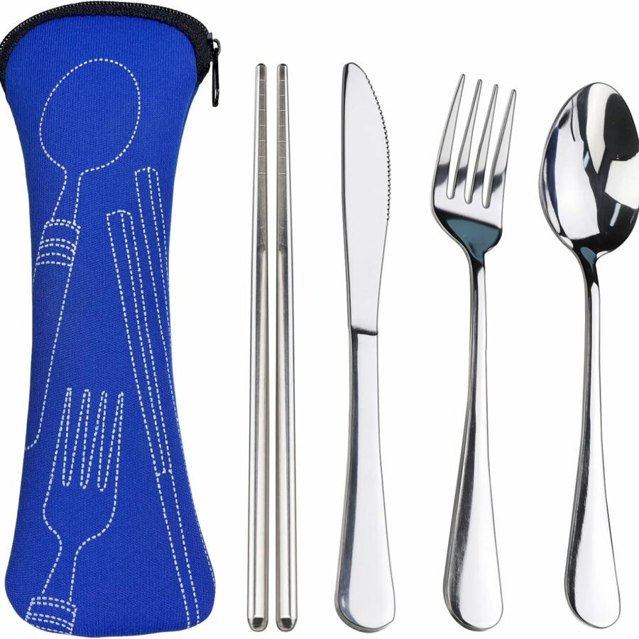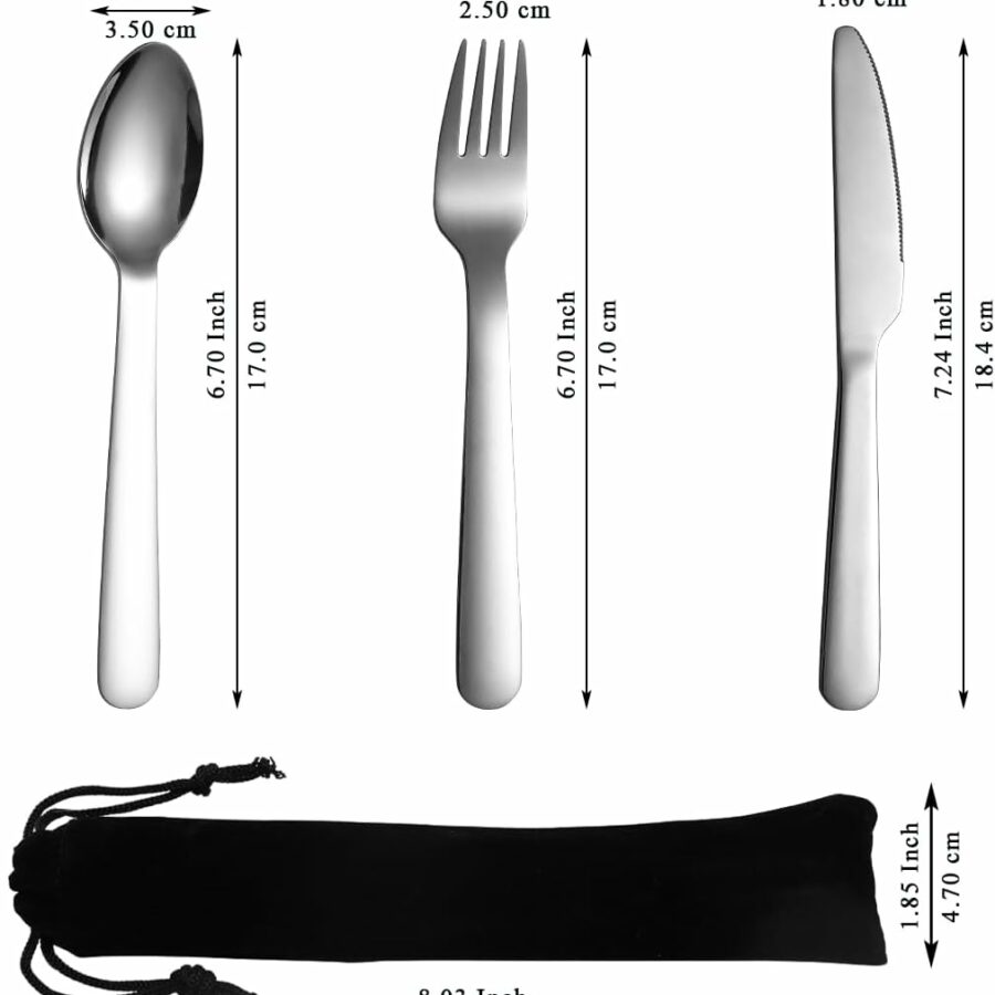 PREMIUM QUALITY Stainless Steel travel utensils Set with case, Healthy & Eco-Friendly 3pc Full Size Fork, Spoon, Portable, reusable utensils with case