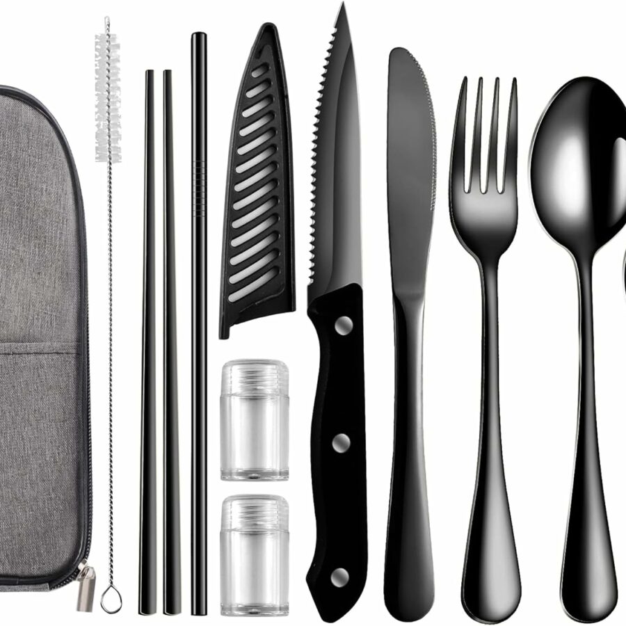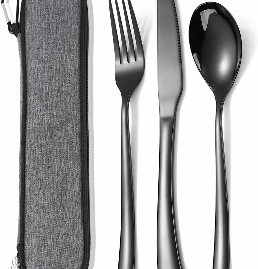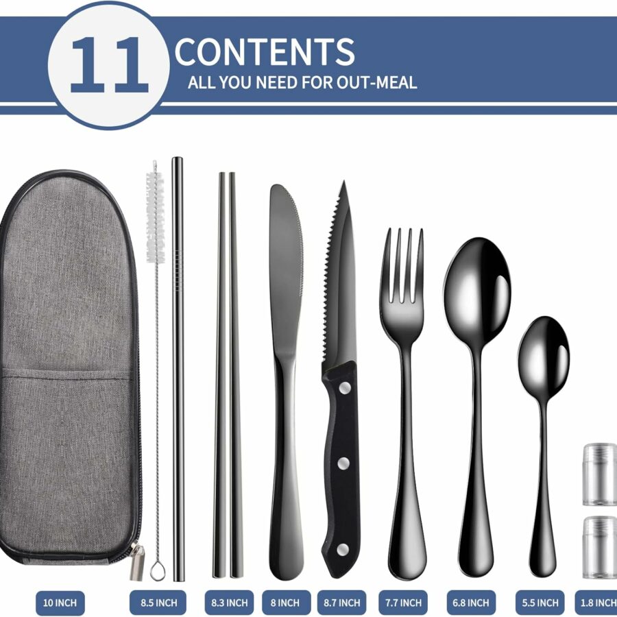 Travel Utensils with Case,Reusable Utensils,Portable Travel Camping Cutlery Set,Stainless Steel Flatware Set,Lunch Boxes Workplace Camping School Picnic (Black)