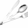 2 Packs Multi Functional Camping Set Stainless Steel Functional Spoon Fork Flatware with Bottle Opener and Whistle for Camping Hiking Backpacking Hunting(Classic Color)