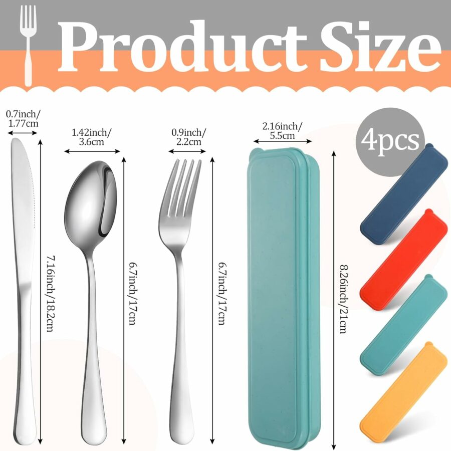 - Stainless Steel Utensil Set: we will provide you with 4 sets of portable utensils set with case, including 4 pieces main dinner knives, 4 pieces main dinner spoons, 4 pieces main dinner forks, and 4 cases, to meet daily use easily