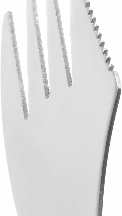 - These is a complete 3-in-1 utensil with a full-sized spoon and fork plus a serrated edge to serve as a knife.