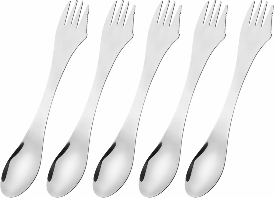 - These is a complete 3-in-1 utensil with a full-sized spoon and fork plus a serrated edge to serve as a knife.