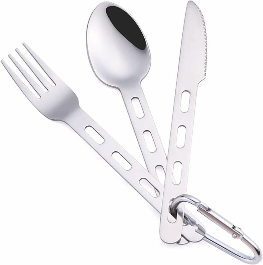 - ULTRALIGHT WEIGHT:Spoon weight:1.5oz,Fork weight:1oz,Knife weight:0.8oz,Total weight:3.3oz,ultralight for backpacking/hiking/camping.