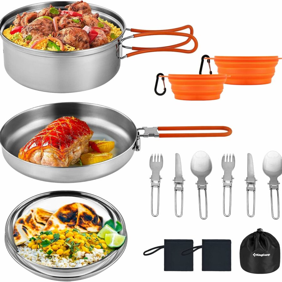 - DURABLE STAINLESS STEEL WITH NON-STICK COATING: Built from premium stainless steel, this mess kit is durable, rust-resistant, and easy to clean. The non-stick cooking surface simplifies meal prep and cleanup, while the full set of utensils means you’re ready to cook and eat—right out of the box.