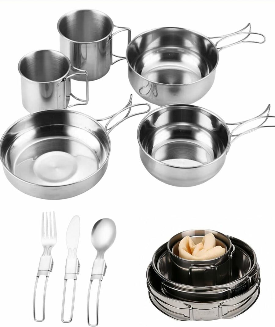 - 【VERSATILE AND PORTABLE】 With its lightweight design and included non-woven storage bag, this stainless steel mess kit is perfect for various outdoor activities such as camping, hiking, picnics, and more. Enjoy delicious meals wherever you go!