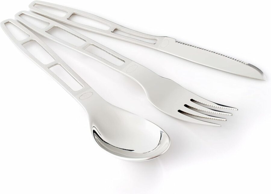 - SPACE SAVING: This Spoon, fork and knife have flat profiles and lightened handles that keep this cutlery set lightweight and compact, making it perfect to include with camping or travel gear