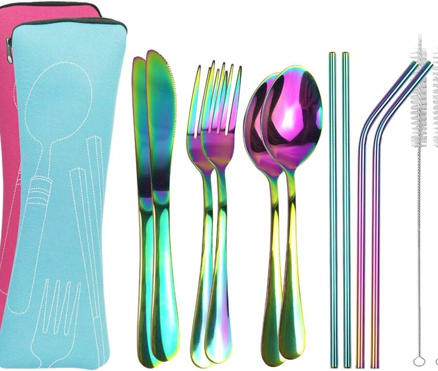 - ✅【Health and Eco-Friendly】Say no to the single-use plastic flatware. This camping travel flatware set is made of high quality food grade stainless steel, reusable and durable for daily use, dishwasher safe, easy to clean.