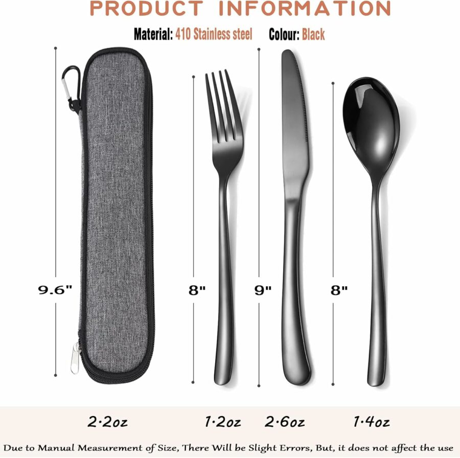 - ✅【3 Piece Utensil with Case】This reusable cutlery set for lunch includes stainsless knife fork spoon, packaged in a waterproof carrying bag. Perfect gift for housewarming, birthday, thanksgiving, christmas and so on.